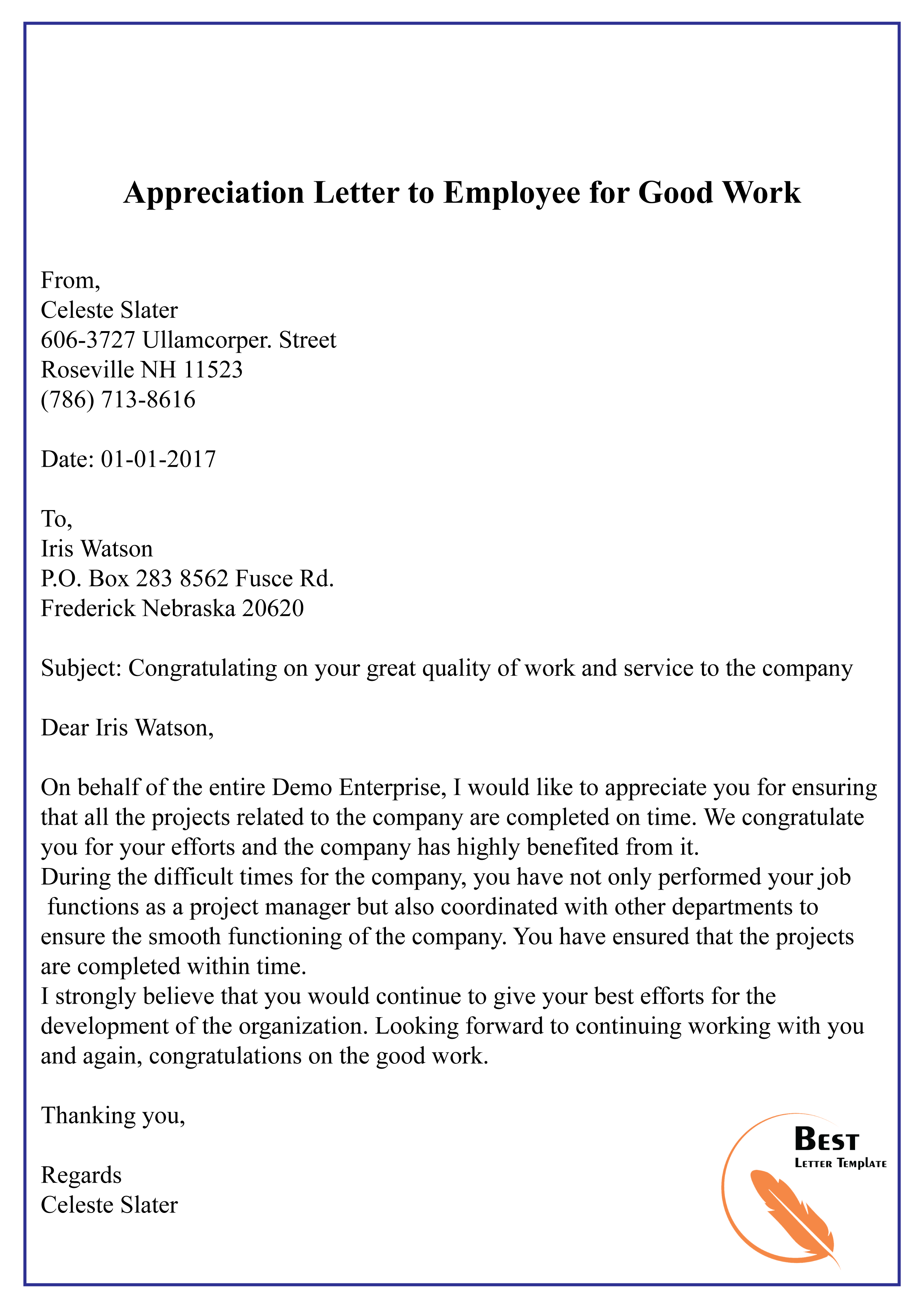 Appreciation Letter for Goo…